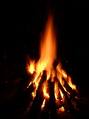 voilà: er ontstaat een klein vuurtje, dat met kleine en steeds grotere takjes